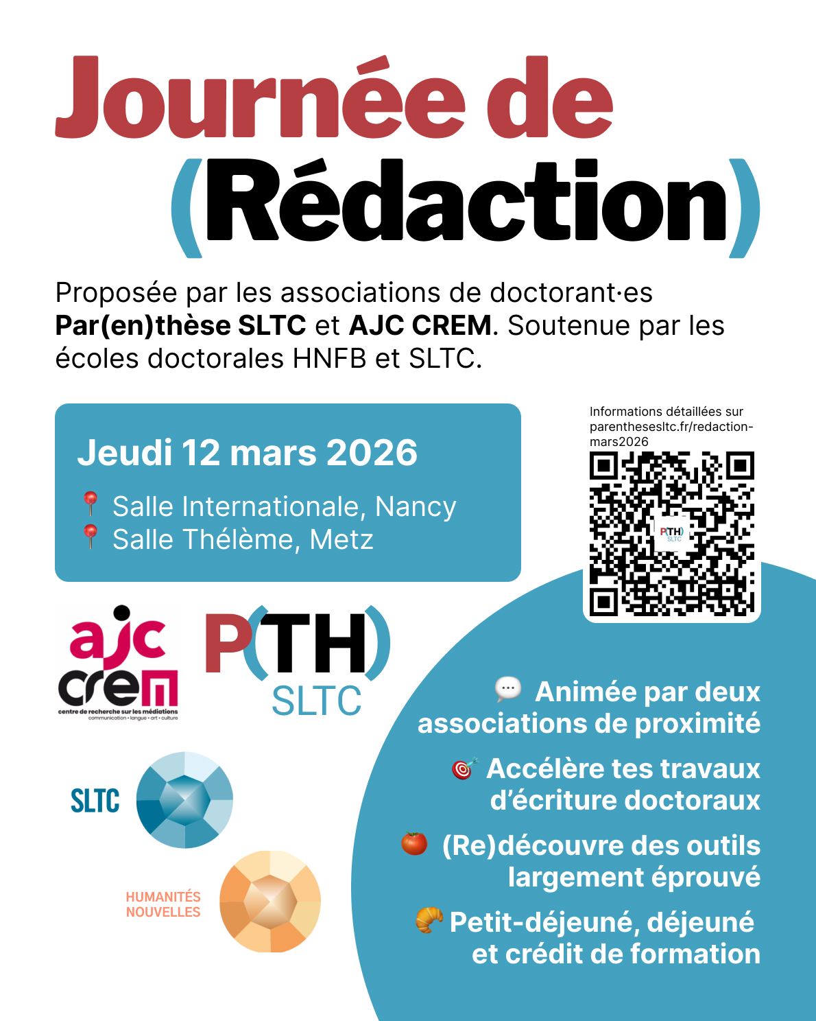 Journée de rédaction doctorale animée par les associations AJC CREM et Par(en)thèse SLTC.
